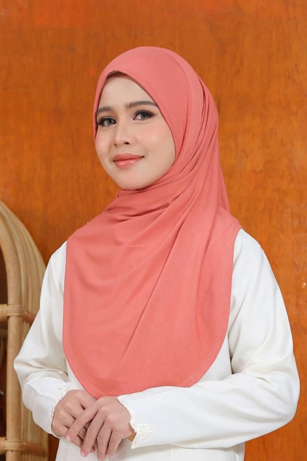 - Potongan slim fit pada bahagian bahu menjadikan tudung lebih kemas terletak dan tidak kembang